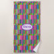 Warm, tropical colors and an unusual design make this beach towel outstanding! Bands of color--pink, blue, green, and others--in blocks and stripes create a modern design that you will love.