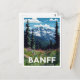 Celebrate the breathtaking high-country beauty of Banff National Park, Canada, with this gorgeous vintage-style postcard. The design features a vibrant foreground of colorful wildflowers, towering pine trees, and a backdrop of dramatic, snow-capped Rocky Mountains under a bright, cloudy sky. This travel poster is perfect for nature lovers, hikers, and anyone who appreciates stunning Canadian mountain scenery. Ideal for sending greetings, keeping as a keepsake, or framing as rustic wall art.