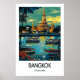 This Bangkok, Thailand travel poster highlights the dynamic character and cultural richness of one of Southeast Asia’s most vibrant cities. Inspired by classic travel poster design, the artwork reflects the balance of historic architecture, modern skyline, and energetic city life that defines Bangkok.