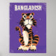 Bangladesh Vintage travel poster cartoon. Bangladeshi tiger vacation print.