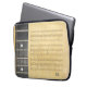 This Neoprene Laptop Sleeve 13-14" features the image of part of a banjo fretboard in wood with pearl inlay and 4 strings on a background of sheet music on aging golden yellow manuscript. The dark wood of the fretboard on the left and the golden hues of the manuscript on the right provide for an eye-catching colour contrast. Please note that the design is not printed on the back of the sleeve. It is black.