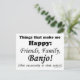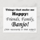 Things that make me happy: Family, Friends, Banjo! (Not necessarily in that order!) What makes you most happy? For some people, it is music, whether it is playing an instrument, singing, or listening to music.