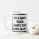 Funny slogan on a Coffee mug that says "I'm a Banjo Player. What's YOUR super talent?". Coffee Mug for a Banjo Player or someone who plays the banjo. Black and white bold text.