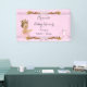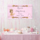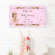 Banner Princess Baby Shower Pink Gold Brunette Baby Shower Girl. Gold Scroll Crown Girl Baby Shower. Pink Tutu and Bow and toy teddy bear.