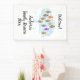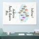 Branches of tree holds a family of owls. Each bird is different colouring. Above tree is the greeting "Welcome" and beneath are the event specifics. Personalise with your greeting, family and event name along with a date, as necessary.