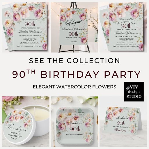 ELEGANT FLORAL WATERCOLOR 90TH BIRTHDAY PARTYDesigned by Vivian Dye