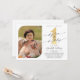 Elegant, minimal Baptism & First Birthday Photo Invitation Featuring photo, gold number one, typography script baptism and birthday. Personalise with modern lettering on a white background.