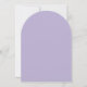 A modern, gender neutral baptism invitation. Inside a lavender (light purple) arch, it has an almost white arch with a round placeholder photo and (darker) purple text inside. Above the photo, there is a lavender cross. The occasion and the name are written in a handwriting script.