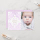Baptism baby girl lilac design thank you card