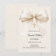 Celebrate your child’s special day with this elegant beige baptism invitation featuring a soft, flowing bow and a delicate gold cross. The neutral cream and beige colour palette creates a timeless and sophisticated look, perfect for both girls and boys.