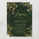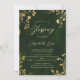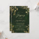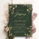 A whimsical watercolor illustration of lush foliage in hunter green and gold, sparkling with fairy lights and magic dust, with a dreamy, fairytale, botanical and floral arrangement, decorates this spring summer fall winter baptism or christening invitation with an enchanted forest theme. An elegant, modern invitation for a fairytale celebrations. Perfect for moms and parents who love the fairytale forest setting, the fairy forest or fairy garden theme and emerald green and gold and who want a gender neutral celebration.