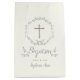 This springtime blue and green leaf wreath will brighten your celebration. This design is on a light cream background, adorned with a beautiful grey cross. Perfect for your child’s Baptism or First Holy Communion. Check out the matching accessories, gifts, party favours and stationery.