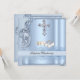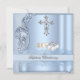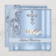 Damask Elegant Baptism Blue White Lace Jewel Cross Boy, Christening Baptism Invitation. Customise with your own details