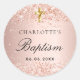 A blush, rose gold gradient background. Decorated with confetti and a faux gold cross. Personalise and add a name and a date.