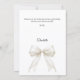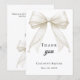 A modern and elegant Baptism, Christening thank you card. A white background, decorated with a large ivory colored bow with pearls. On the front the text: Thank You, name, and a date.