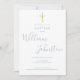 Baptism Christening Gold Cross Dusty Blue QR Code Invitation