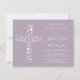 This pretty Baptism or Christening invite features an elegant illustrated floral cross that resembles a delicate embroidery pattern. Ideal for a baby girl's religious celebration, it can be customised with your child's name and the event details. The background colour of the front is purple, but can be changed to any colour of your choice. The back features a white dotted line pattern over a pink background, that can also be customised to any colour of your choice.