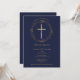Baptism Christening Navy Blue Gold Cross Floral Invitation