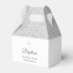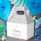 Elegant baptism or christening favour box featuring silver stardust with your event details set in chic silver typography. You can personalise with your own thank you message on the reverse. A perfect way to say thank you to your guests! Designed by Thisisnotme©