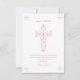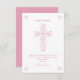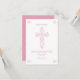This modern Baptism, or Christening, Thank You Card features an elegant illustrated pink and white floral cross. A quick and easy way of thanking guests for joining a girl's religious celebration, it can be customised with your child's name and a personal note. The background colour can also be changed to your liking.