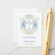 This design features a watercolor illustration of greenery Crest, blue Cross and blue ribbons. You can adjust text according to your requirements.