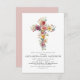 Daughter's Dusty Pink Rose and Sage Green Floral and Eucalyptus - Gold Foil Cross Botanical Greenery Watercolor Christian Religious Baptism Invitations.