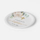 For an elegant baptism, gender neutral. A chic white background. Decorated with a watercolored white rose and green eucalyptus leaves, sprigs, greenery, faux gold leaves. A faux gold cross. Personalise and add the name of the child and a date. Black and golden letters.
