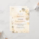 A golden watercolored background decorated with golden eucalyptus and faux gold glitter dust. Personalise and the childs name and ceremony details. Black and golden coloured letters. Gender neutral.