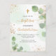 Baptism eucalyptus greenery glitter cross script invitation postcard