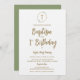 Baptism First Birthday Greenery wreath Gold cross Invitation