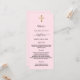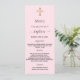 Baptism, christening reception menu card. Personalise and add a name, date and the menu. A light pink pastel background and a golden cross.