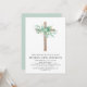 Sage Green Boy's Eucalyptus and Wooden Cross Botanical Greenery Watercolor Christian Religious Baptism Invitations.