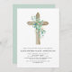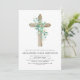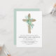 Sage Green Girl's Eucalyptus and Wooden Cross Botanical Greenery Watercolor Christian Religious Baptism Invitations.