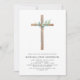 Sage Green Boy's Eucalyptus and Wooden Cross Botanical Greenery Watercolor Christian Religious Baptism Invitations.
