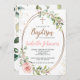 Make the big day even more special with this beautiful Greenery Baptism Invitation for a Girl with a faux gold oval frame. Stunning in its simplicity, this invitation is sure to impress your guests.