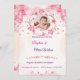 This is a baptism invitation for Olivia Wilson, featuring a delicate and elegant design. The invitation highlights a soft floral theme in shades of pink, centred around a beautiful photo of the baby. It includes key details about the ceremony's date, time, location, and RSVP information. The overall design exudes warmth and spirituality, making it perfect for such a special occasion.