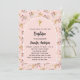 An arch frame on a pattern of pampas grass and pink flowers and a golden cross. Personalise and add a name and details.