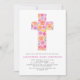 Baptism Pastel Floral Pink Rose Cross Invitation