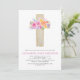 Baptism Pastel Floral Pink Rose Cross Invitation