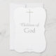 Elegant Twins Baptism for Daughter and Son Invitations with simple hand-painted silver cross with gold accents on front and back of card. Fresh and crisp looking invitation cards. Prints beautifully. Baptism is written in silver script. Children's Names is written in pretty light pink and blue script (click customise to change or darken colours). Personalise with your Children's First and Middle Name, or First Names. Insert Date of Baptism, Church details, Reception Details and RSVP details. Back of cards are crisp white with the wording Children of God in silver text written below cross image.