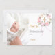 A modern and elegant baptism thank you card. A chic white background decorated with a watercolored pink floral wreath, a bow and a golden cross. Personalise and add your photo of the child, thank you note and name.