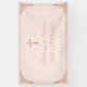 The background is blush pink. There is a faux rose gold foil vintage frame and (faux) rose gold cross above the text. The message "Welcome to [Name]'s" is written in an elegant calligraphic script, the rest in caps. All text is pink.