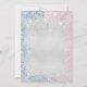A modern, elegant baptism, celebrating two babies, a girl and a boy. Faux silver metallic looking background decorated with blue and pink faux glitter sparkles and a golden cross. Personalise and add names and ceremony details. Black coloured letters.