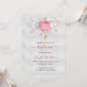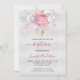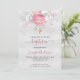Baptism silver pink florals girl elegant white invitation