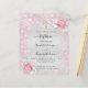 A modern, elegant baptism, celebrating two baby girls, twins. Faux silver metallic looking background decorated with pink faux glitter sparkles, a golden cross and florals, flowers. Personalise and add names and ceremony details. Black coloured letters.