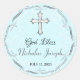 "God Bless" sticker for any religious occasion. Great for envelope seals or favours. Baby Blue, Silver and white. Classic Colours.