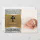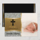 Beautiful silver and gold baptism or christening photo thank you cards- Baby's vertical photo on the right side. Background on the left is faux silver glitter for a shiny look. Reads Thank You for sharing my special day in black and gold with date in matching gold. Christian cross adorns the top. Baby's name at the bottom in elegant script lettering. Thin, gold metallic look ribbon in the centre separates the two halves. Back has matching black background and matching, faux gold metallic ribbon borders. Note: All images are printed. Not actual glitter or metal. Elegant, baby baptism thank you cards to show your appreciation for your guests for either baby boy or baby girl. Click Customise option to change text colours, size, and font styles. Visit our online Zazzle.com/angela65 shop for other personalised, photo baptism cards.
