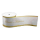 A white and gold baptism ribbon to decorate the candles or favours. It has white marble background, faux gold foil borders and the name, the occasion and the date are written in an elegant calligraphic script.
