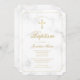 Baptism White Marble Gold Cross Script Boy Invitation