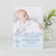 The soft blue background has the word "Baptism" written on its upper most border and hangs over your baby's photo. It is embellished with an intricate blue cross. An elegant and stylish invitation.